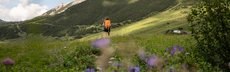 Einer der aussichtsreichsten Rundwanderwege ist der Fürstin-Gina-Weg, der auf 2000 Metern Höhe auf einem blumenübersäten Grat entlang gesicherter Bergwege zur Pfälzerhütte führt.