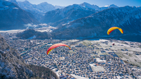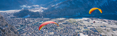 Wer Interlaken und Umgebung ganz aus der Vogelperspektive betrachten und sich dabei majestätisch fühlen möchte, wagt einen Gleitschirmflug und genießt die stimmungsvolle Winternatur von oben. Interlaken ist weltweit ein bekanntes und ideales Gebiet für Gleitschirmflüge. So ein Flug im Winter ist eine schöne Erfahrung: Durch den Schnee stapfen und abheben. Die blauen Seen bieten einen wunderschönen Kontrast zu den verschneiten Tannen und den schneebedeckten Alpen. Dabei wird einem mitten im Winter warm ums Herz. Während des 10- bis 20-minütigen Fluges mit dem Gleitschirm überwindet man 800 m Höhenunterschied und landet mitten in Interlaken auf der Höhematte.